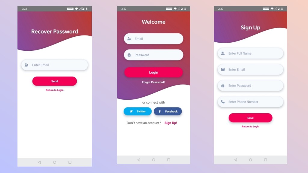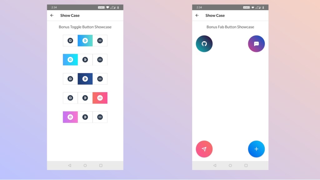 The package also includes bonus components apart from template.These are gradient buttons, gradient fab buttons and progress bars.
