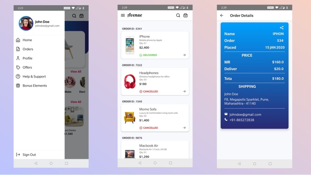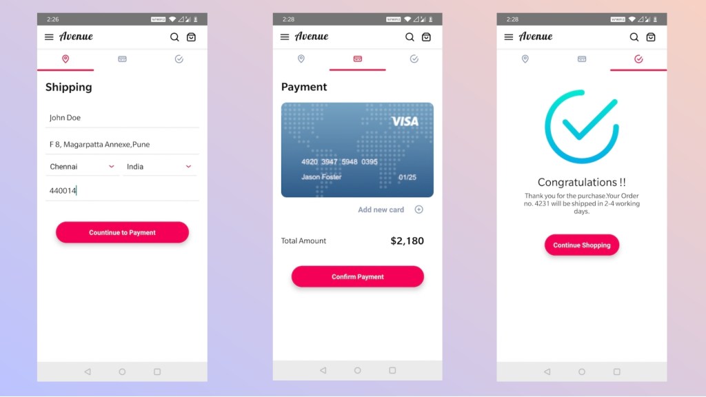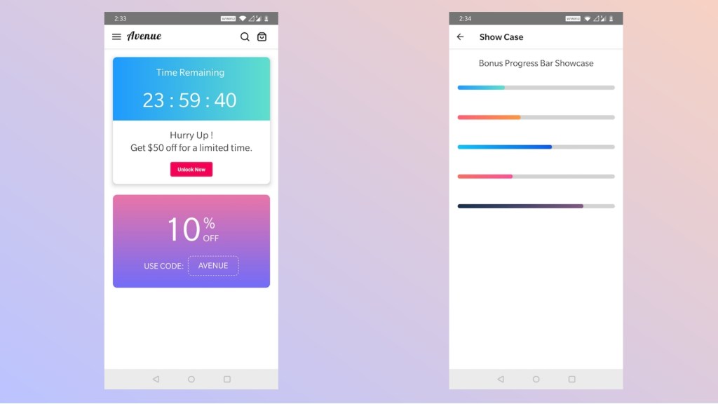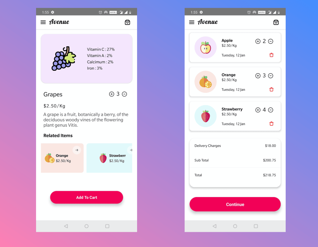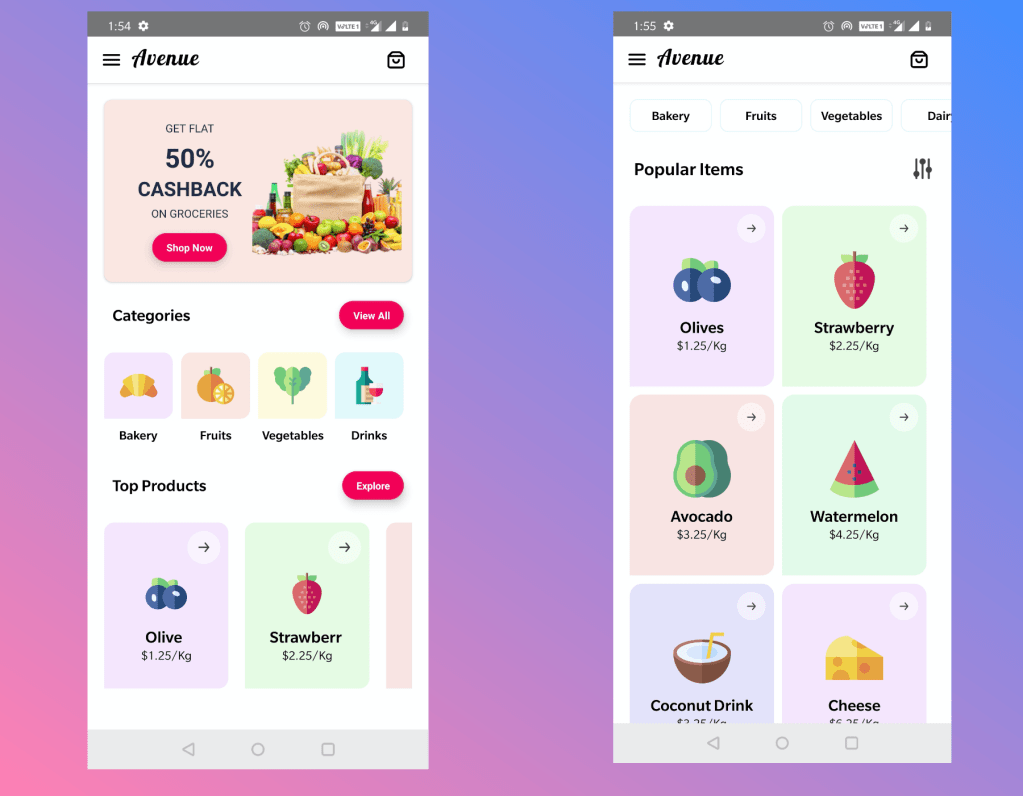 Avenue is an e-commerce mobile app template built on top of React Native and Redux. It supports both Android & IOS platforms and uses the latest React Native version.Navigation and State management are already implemented coupled with an amazing user interface to bootstrap your project within minutes. Includes bonus components like gradient buttons and gradient progress bar. With 35+ screens and 40+ re-usable components this app has almost all features required to build a successful e-commerce product.