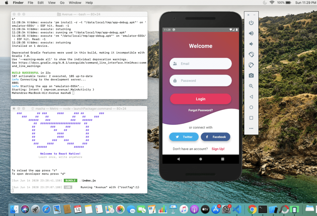 After installing all dependencies you are ready to run application in your simulator or on your device. To run execute this command in your terminal : “react-native run-android”